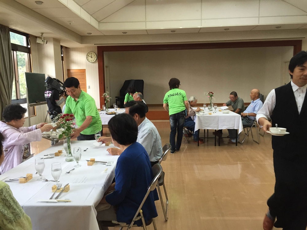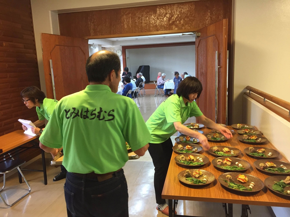 とみはらむらメンバーの連係プレーで料理をお届けしました。