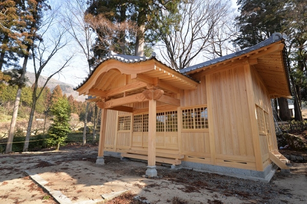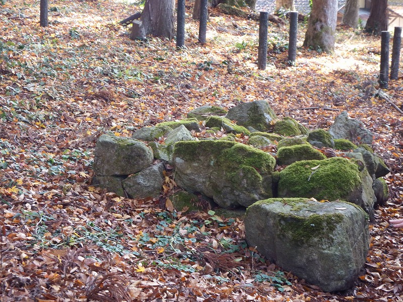 本殿の裏側には、石積の祭祀遺構(さいしいこう)が残っています。年代は不明ですが、周辺には奈良時代の土器も出土しており、古くから信仰の場であったことがわかります。