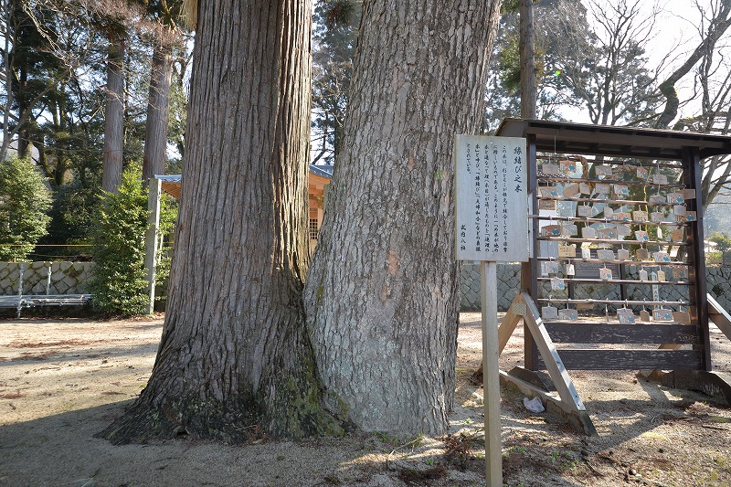 また、境内にはモミと杉の木が根元で結合している「縁結び之木」、樹齢千年とも言われる県下屈指の巨樹「佐波良の大杉」があります。