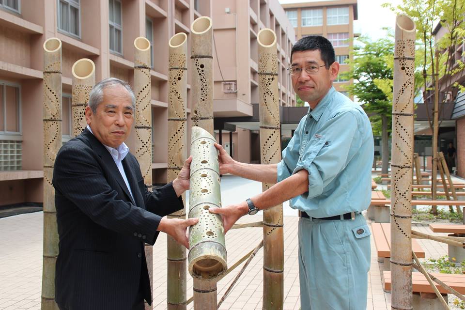商大では、今後この竹灯篭に色を塗り、オブジェやイベント(エコナイト)への活用を検討されるそうで、社地域としてもこの竹灯籠がどのような形でお披露目されるかとても楽しみです。