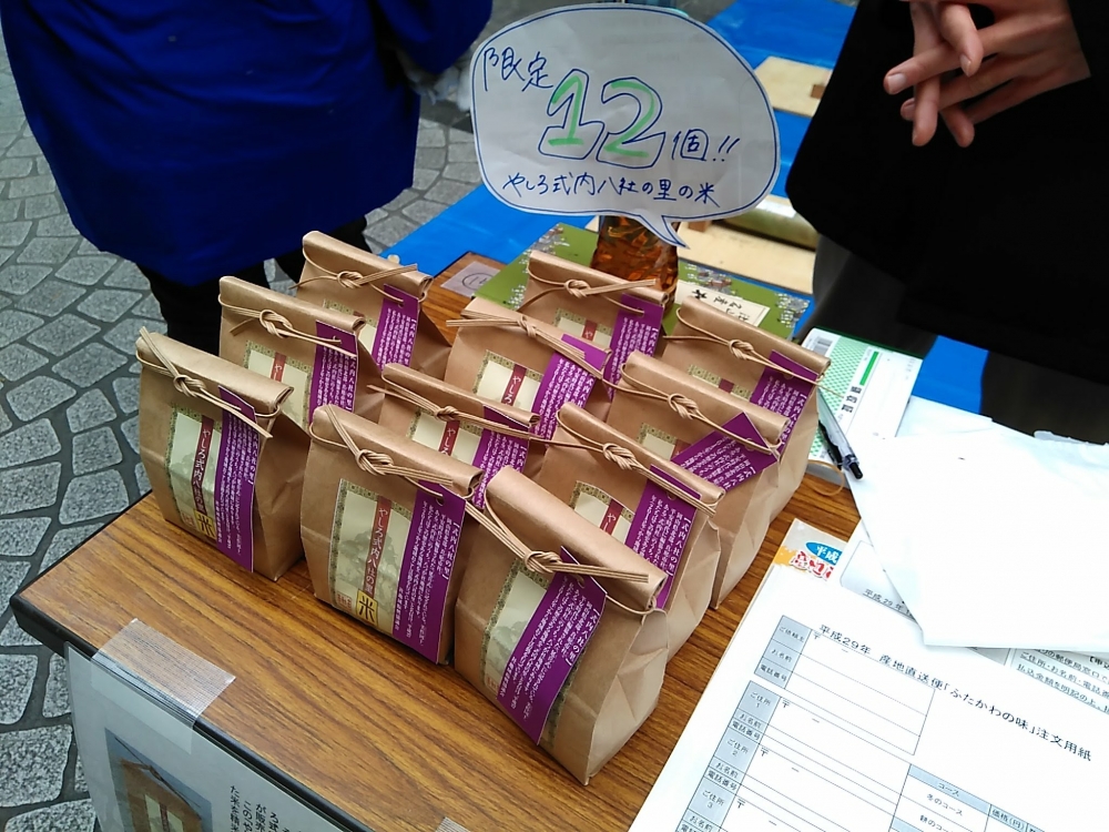 実施したのは、竹灯篭作り体験と「やしろ式内八社の里の米」の試験販売です。