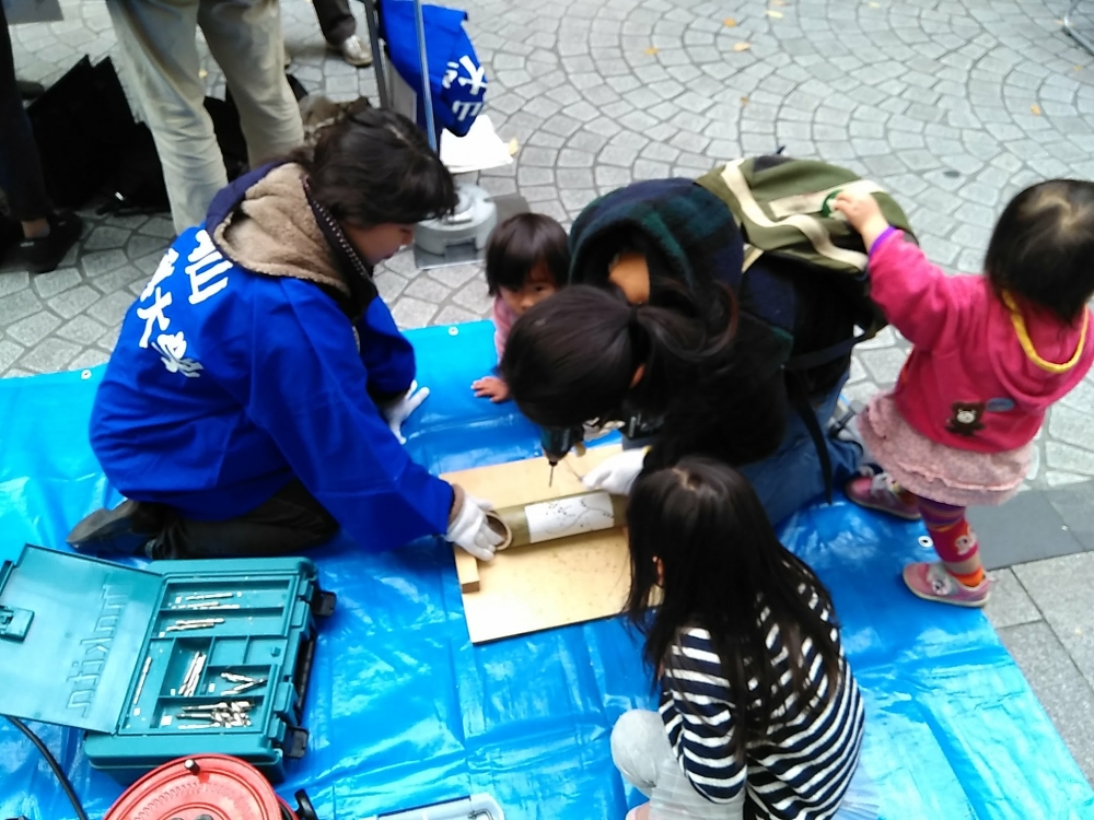 竹灯籠づくりはお子様連れのお客様が多く、みなさん初めてドリルに苦戦しながらも楽しんでいただきました。里の米もご購入いただきましたよ!!