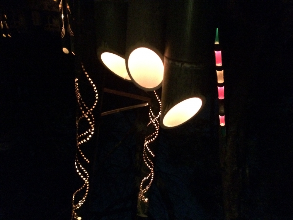 準備段階では風と雨にさらされ、「本番大丈夫かな~」とハラハラしましたが、雨は止み、少し気温も暖かくなり竹あかりには絶好の天候となりました。