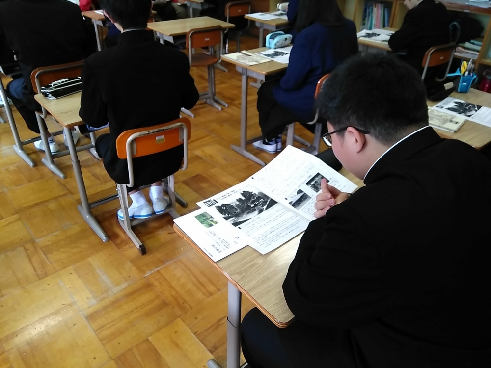 湯原中学校にて、ボランティアガイドにより社地域の歴史に関する授業を実施しました!!