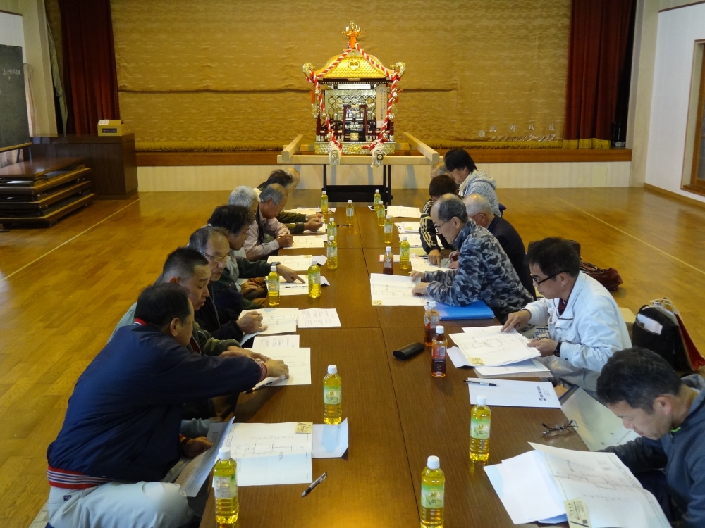 昨年の臨時総会で、神社総代に加え、氏子の中から「建設委員」を選出しました。合計15人の氏子代表と、建築業者との話し合いがこれまで4回開かれました。
