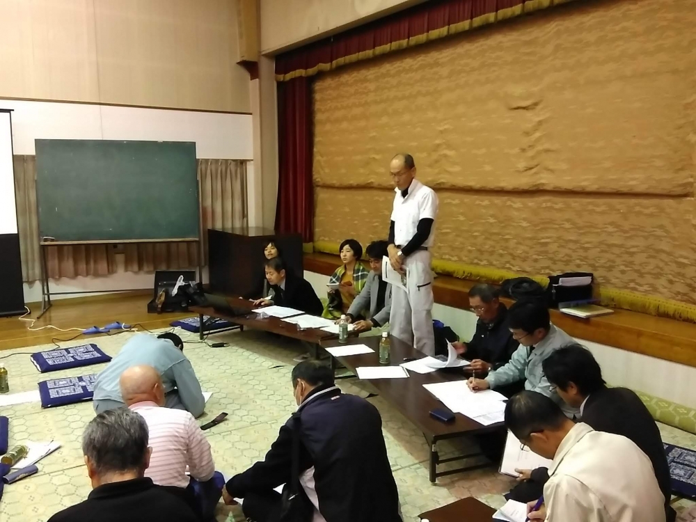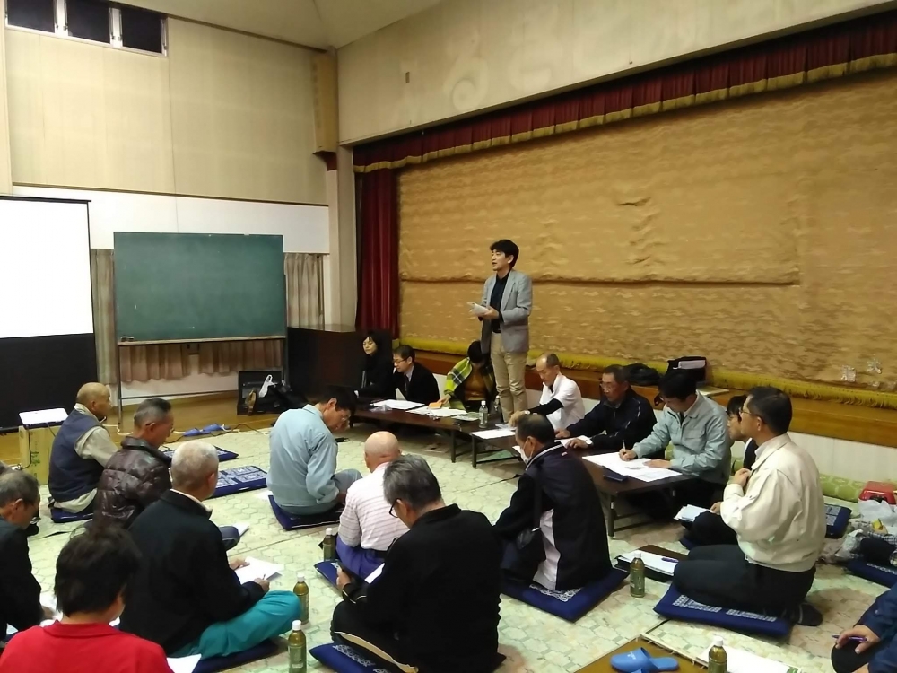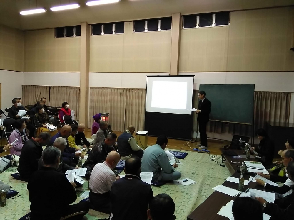 社コミュニティハウスにおいて、SDGSの取り組みに関する地区全体への説明会が開かれました。今後関わっていただく大学の先生方により、大御堂の茅葺き替え、デジタル観光情報の整備、地域資源の活用について説明がが実施され後、住民の皆さんとの意見交換が行われました。