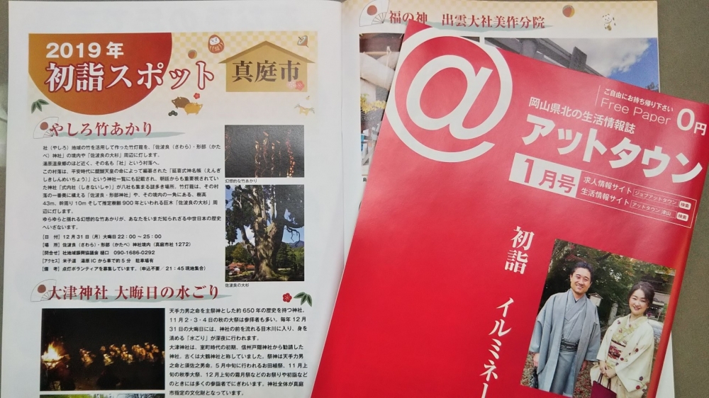 「2019年初詣スポット」の真庭市の欄に写真付きで、かつ詳細も合わせて載っておりますので、ぜひお手に取ってご一読ください!!