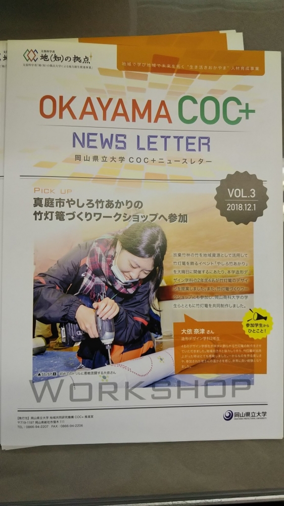 岡山県立大学の冊子「OKAYAMA COC+ NEWS LETTER」で、やしろ竹あかりワークショップ参加の記事が写真付きで掲載されました!