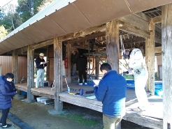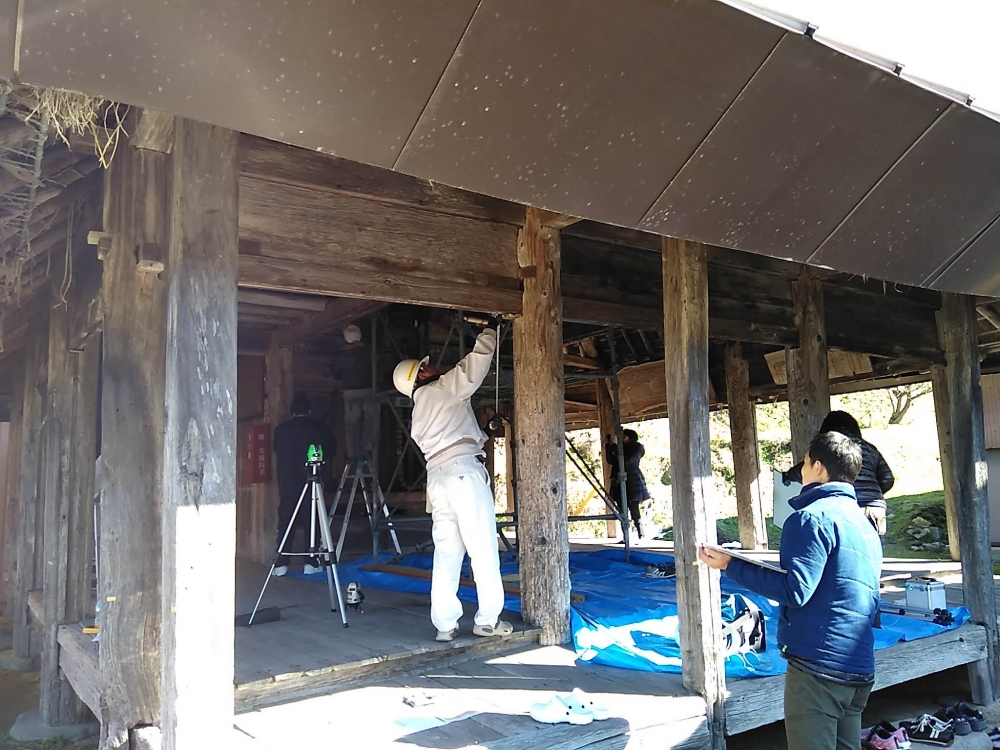 茅を使用することで重量が増すのですが、大御堂自体が少し傾いていたり、基礎が崩れている箇所があったりするらしく、修繕が必要なのかどうか?ということも確認していかなければならないそうです。