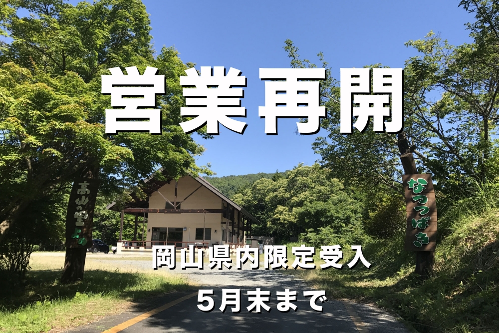 なお、社会情勢を鑑みて、ひとまず5月末までは岡山県内のお客様のみの受入とさせていただいております。