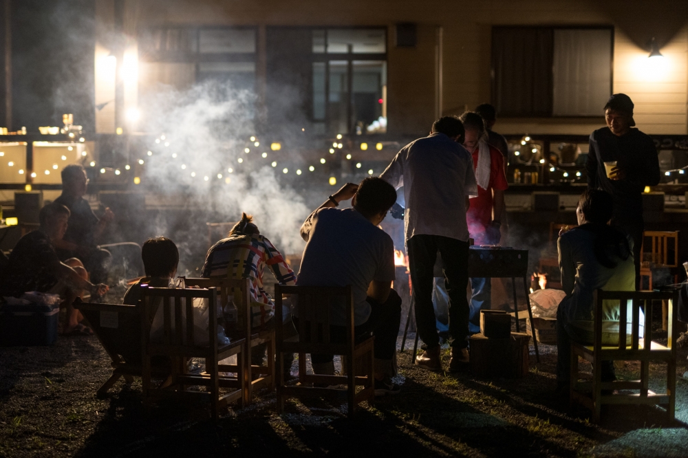 食材を持参された方は猪肉を焼いて食べたり、海鮮を焼いたり、と