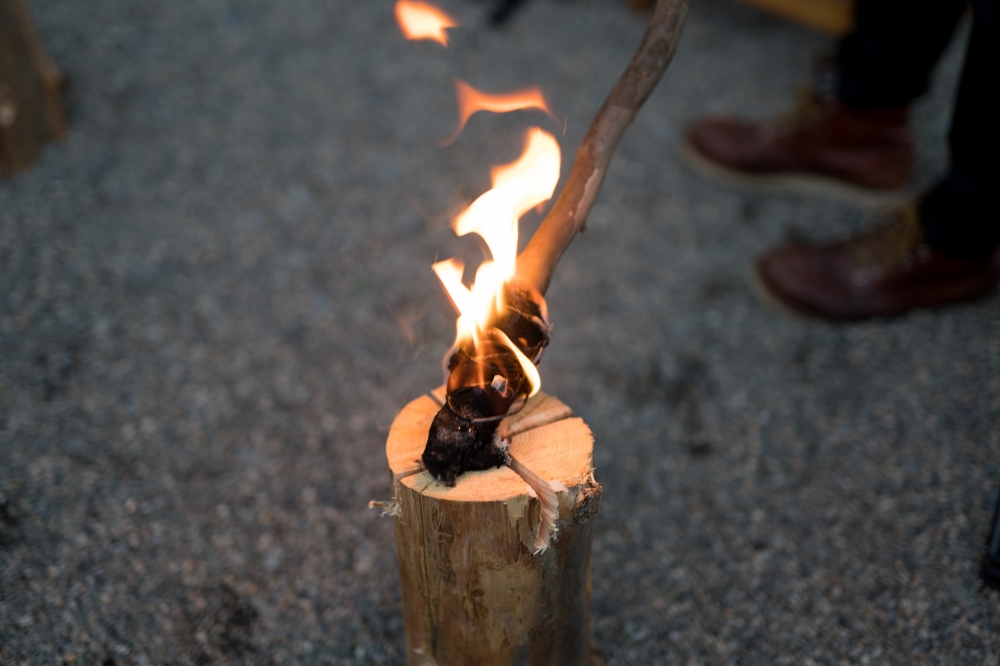 タイマツを使って点火式。