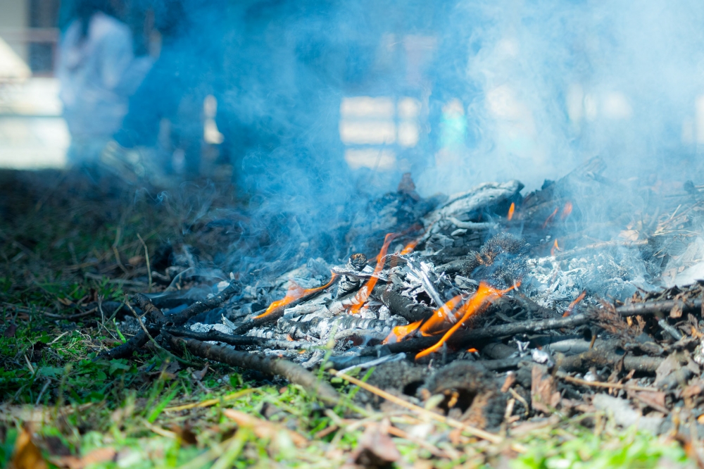湿った落ち葉だったため、煙がモクモク・・・