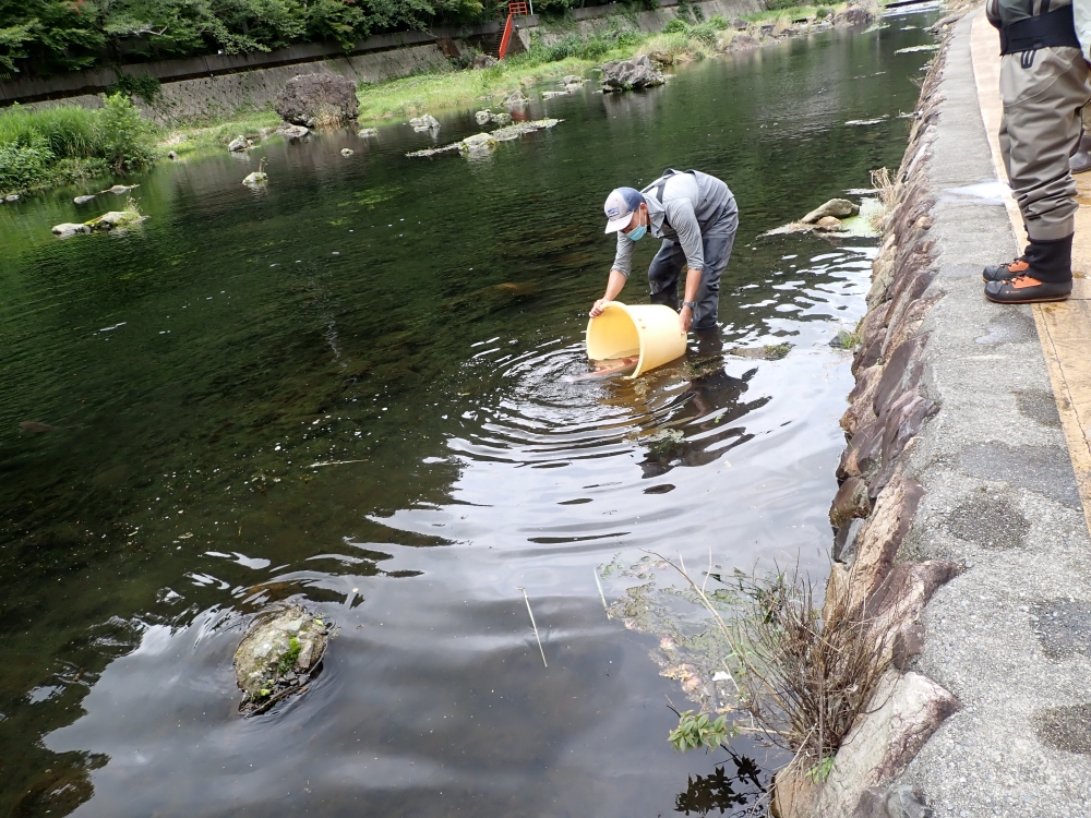 放流箇所は、湯本温泉館の裏手を中心に、漁協休憩所前、砂湯前となっております。