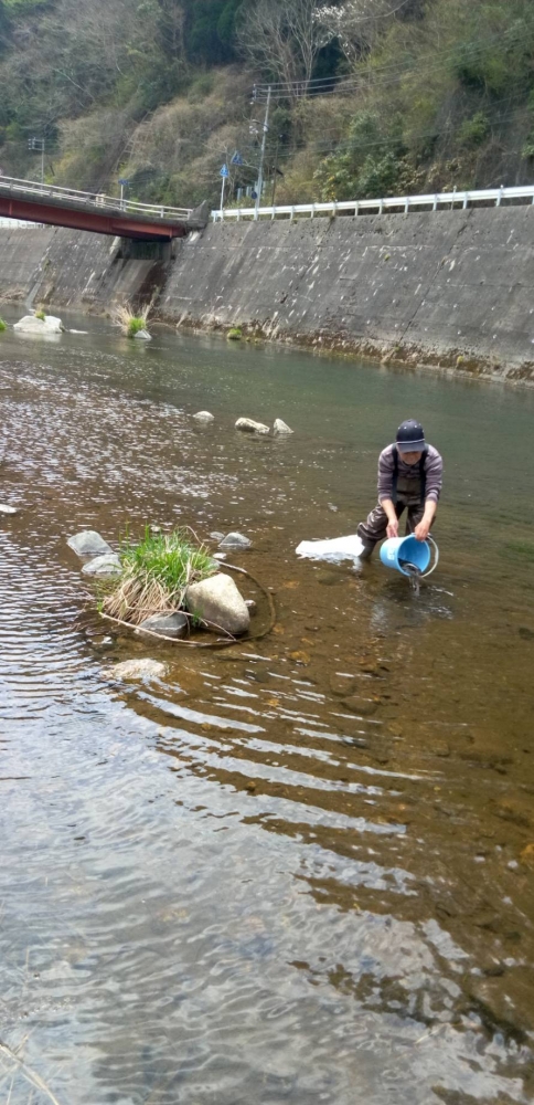 4月12日(火)にウナギの稚魚放流を当遊漁地域内の河川全域に行いました。