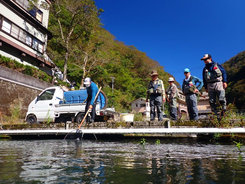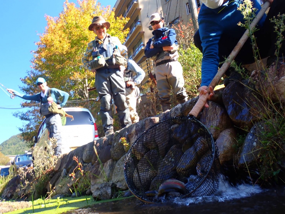 前回のお知らせで予告しました通り,10/16(日)に第四回ニジマス放流を実施いたしました。